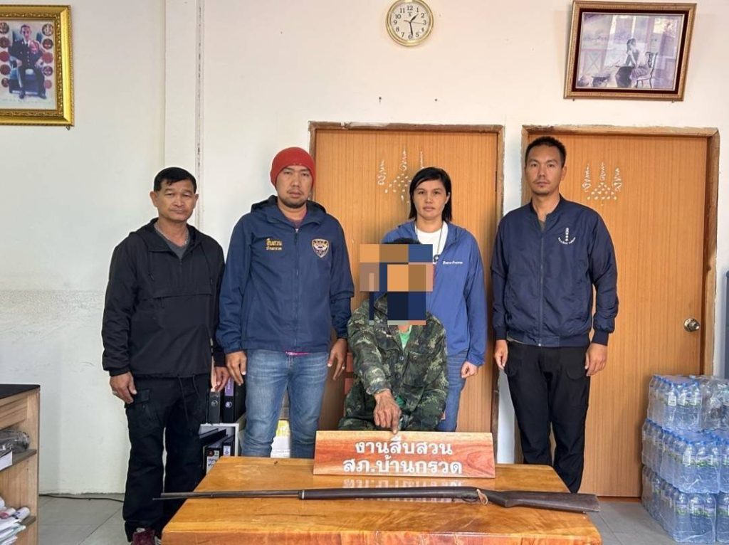 ผลการปฏิบัติงาน เจ้าหน้าที่สามารถจับกุมผู้ต้องหารายหนึ่ง พร้อมของกลางอาวุธปืนแก๊ปยาวชนิดประจุปากแบบประกอบเอง จำนวน 1 กระบอก