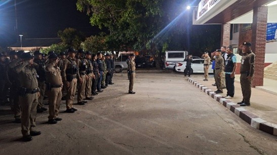 ปล่อยแถว ข้าราชการตำรวจและเจ้าหน้าที่ฝ่ายปกครองอำเภอบ้านกรวด ในภารกิจรักษาความปลอดภัยงานคอนเสิร์ต