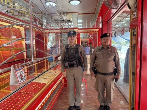 ออกตรวจร้านทอง ธนาคารและจุดเสี่ยง ในเขตพื้นที่รับผิดชอบ เพื่อป้องกันและป้องปรามการเกิดเหตุอาชญากรรมต่อชีวิตและทรัพย์สินของประชาชน