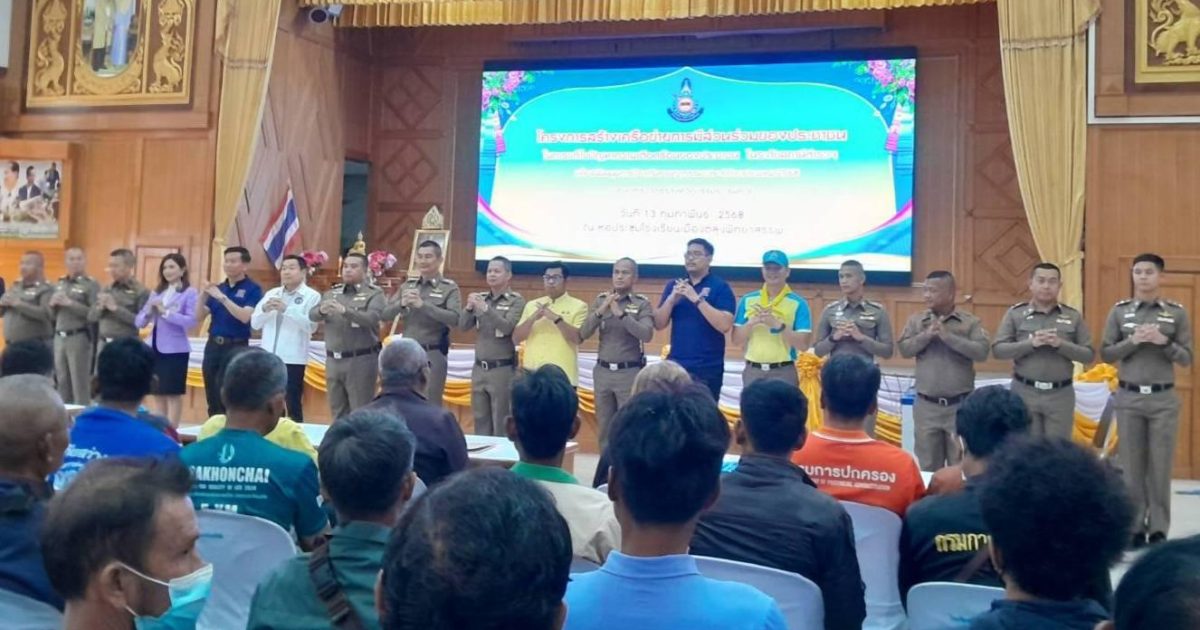 พ.ต.ท.คมสัน สรชัย สวป.(ชส.)สภ.บ้านกรวด นสต.ไกรศักดิ์ บัวกอ นสต.ธนรัตน์ บุญสำเร็จ ชุด ชมส.สภ.บ้านกรวด นำประชาชนจิตอาสา ผู้นำชุมชน ตำบลหินลาด อ.บ้านกรวด จ.บุรีรัมย์ ร่วมอบรมโครงการสร้างเครือข่ายการมีส่วนร่วมของประชน ณ.หอประชุมโรงเรียนเมืองตลุงพิทยาสรรพ์